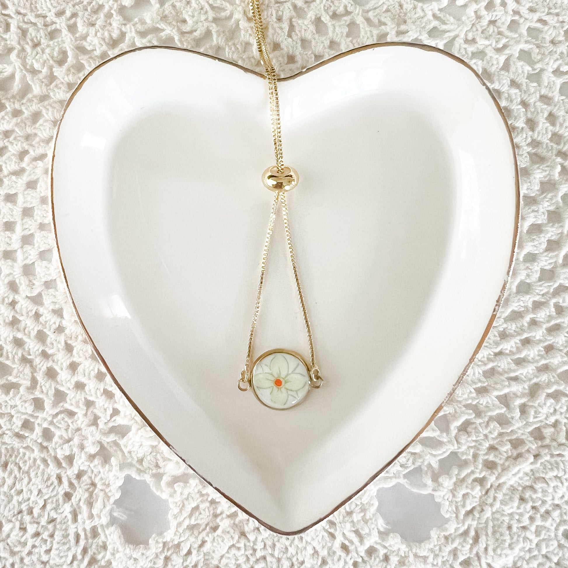 Note: Due to the nature of the vintage china, each piece may have unique marks or crazing in the original glaze. The design placement on small batch pieces may vary slightly.